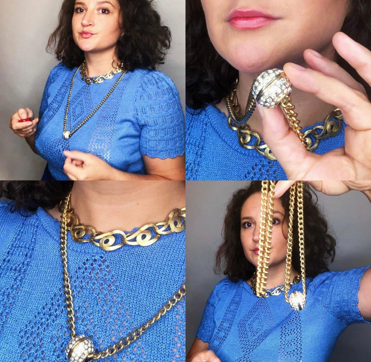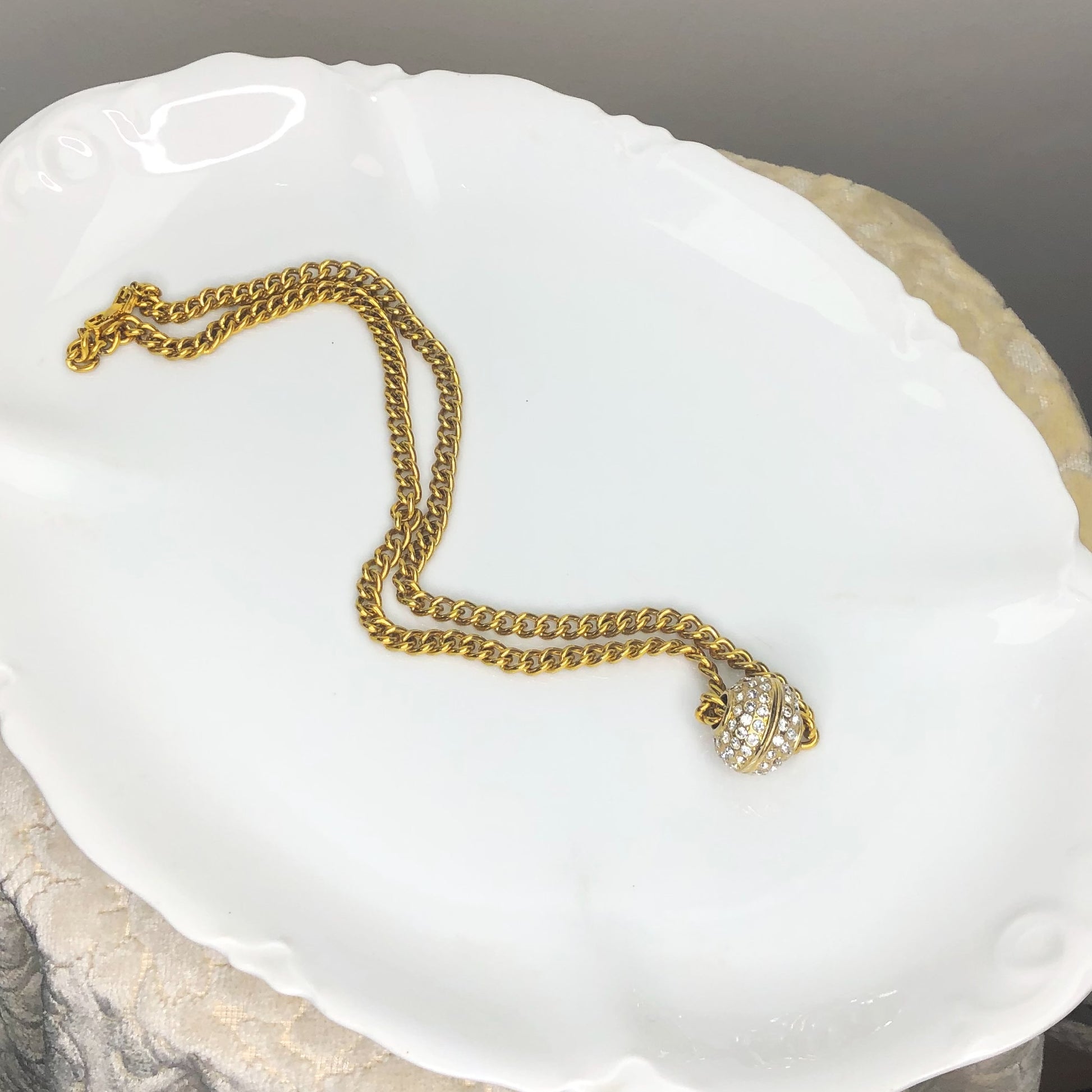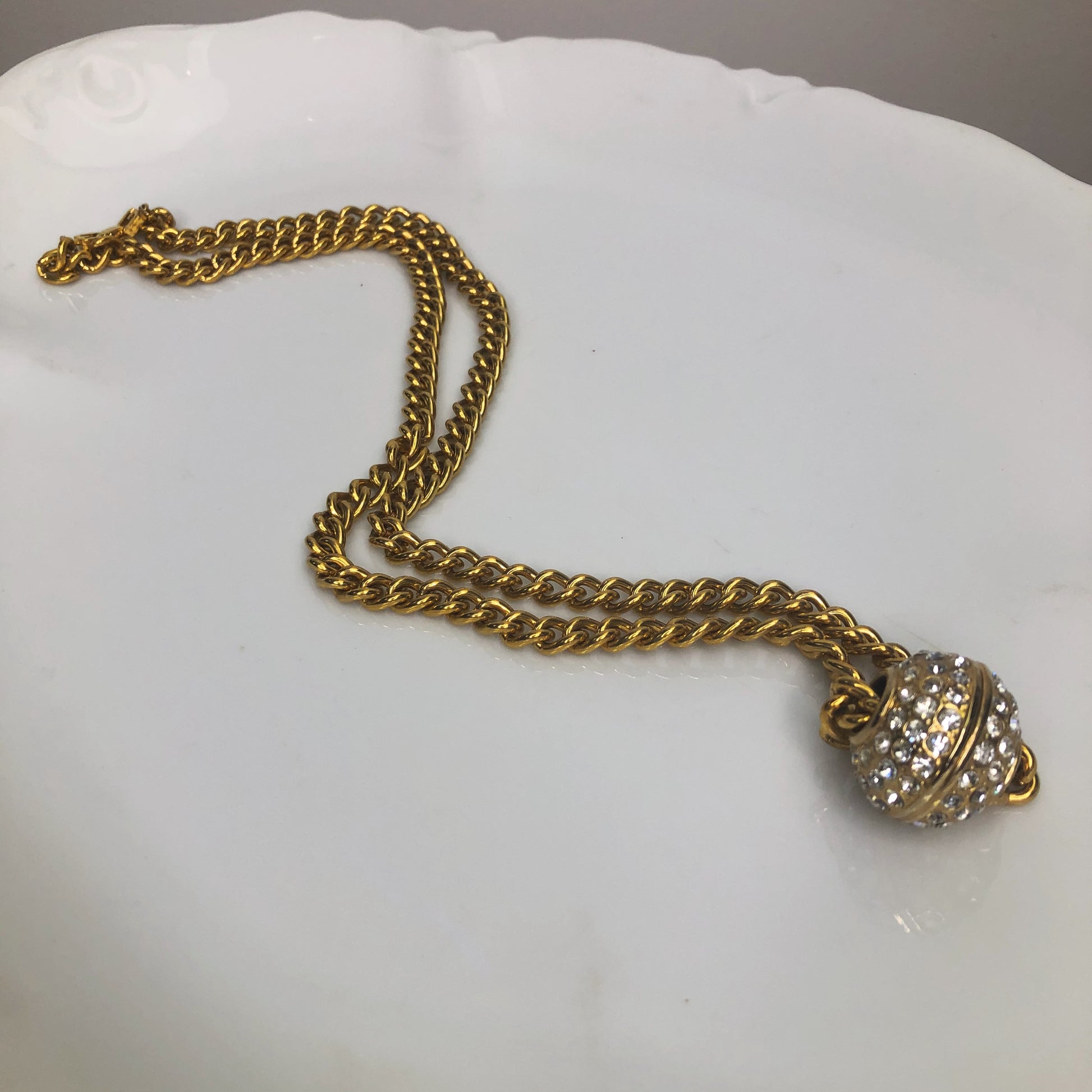 1990s givenchy Rhinestone studded glam ball on gold plated chain.