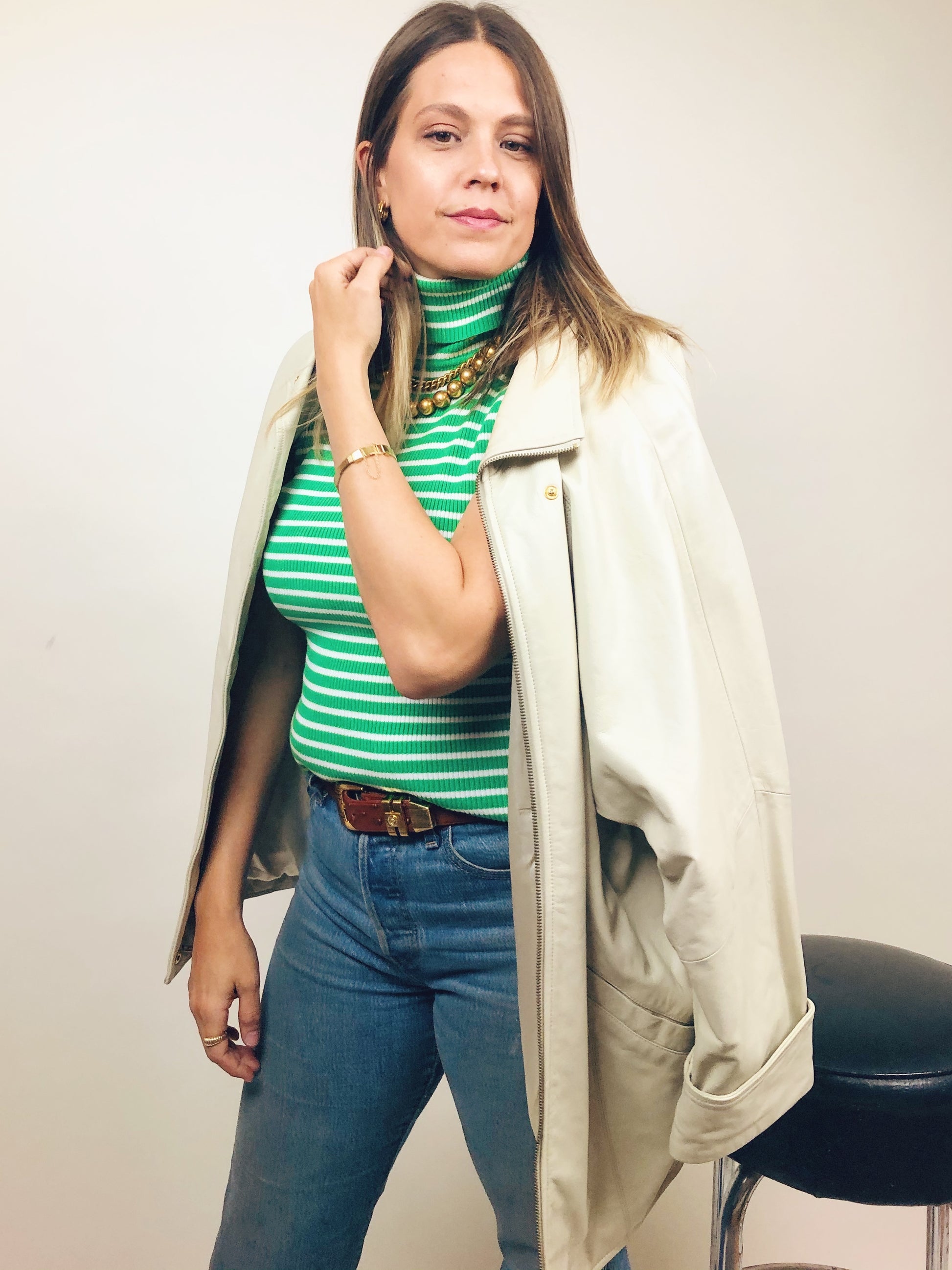 Carmel leather belt with gold hardware with major versace vibes