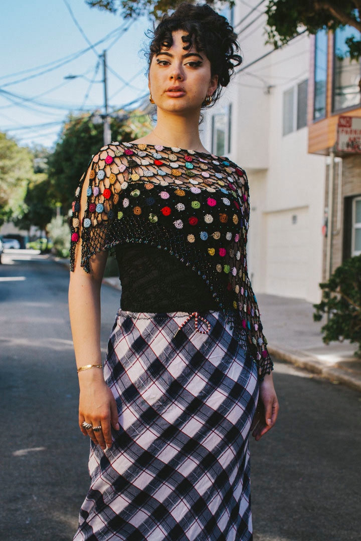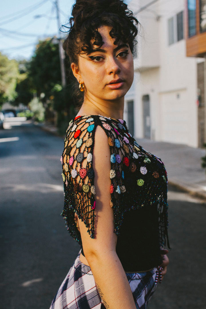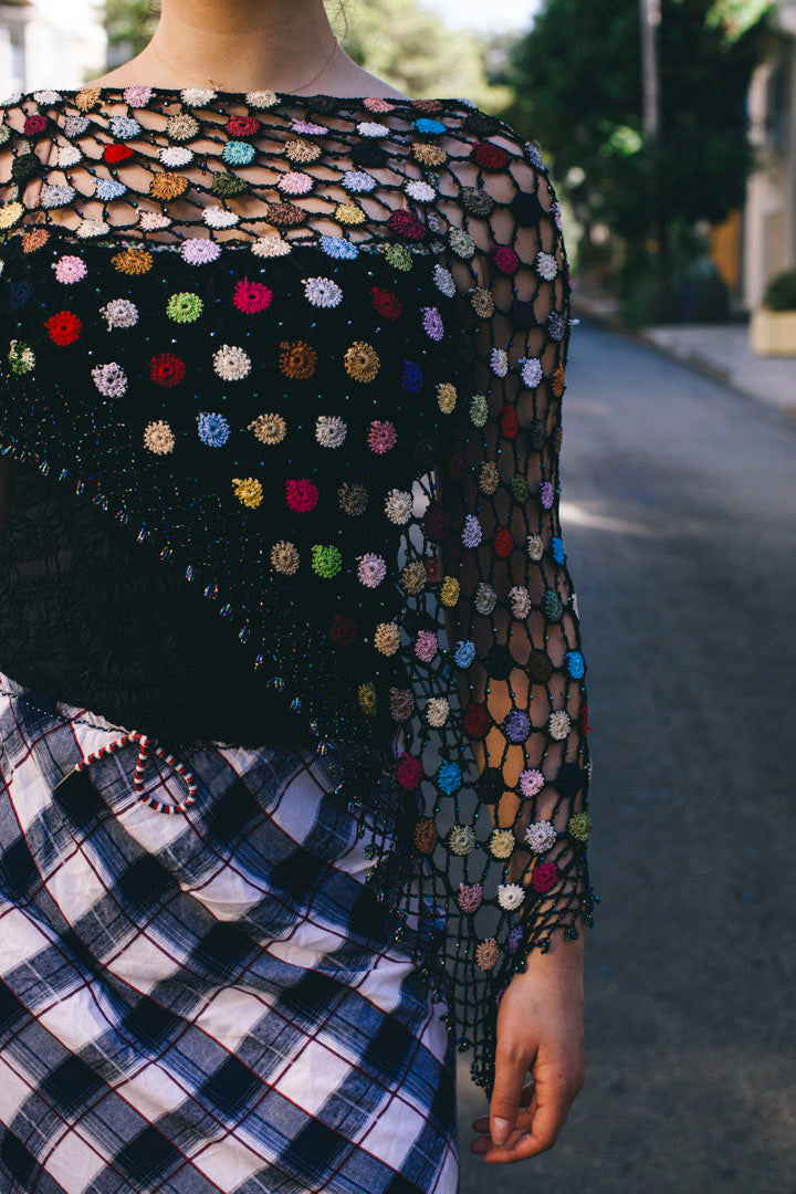 PORTER Collectable Hand Crotchet Beaded Shawl Color Burst size s-m