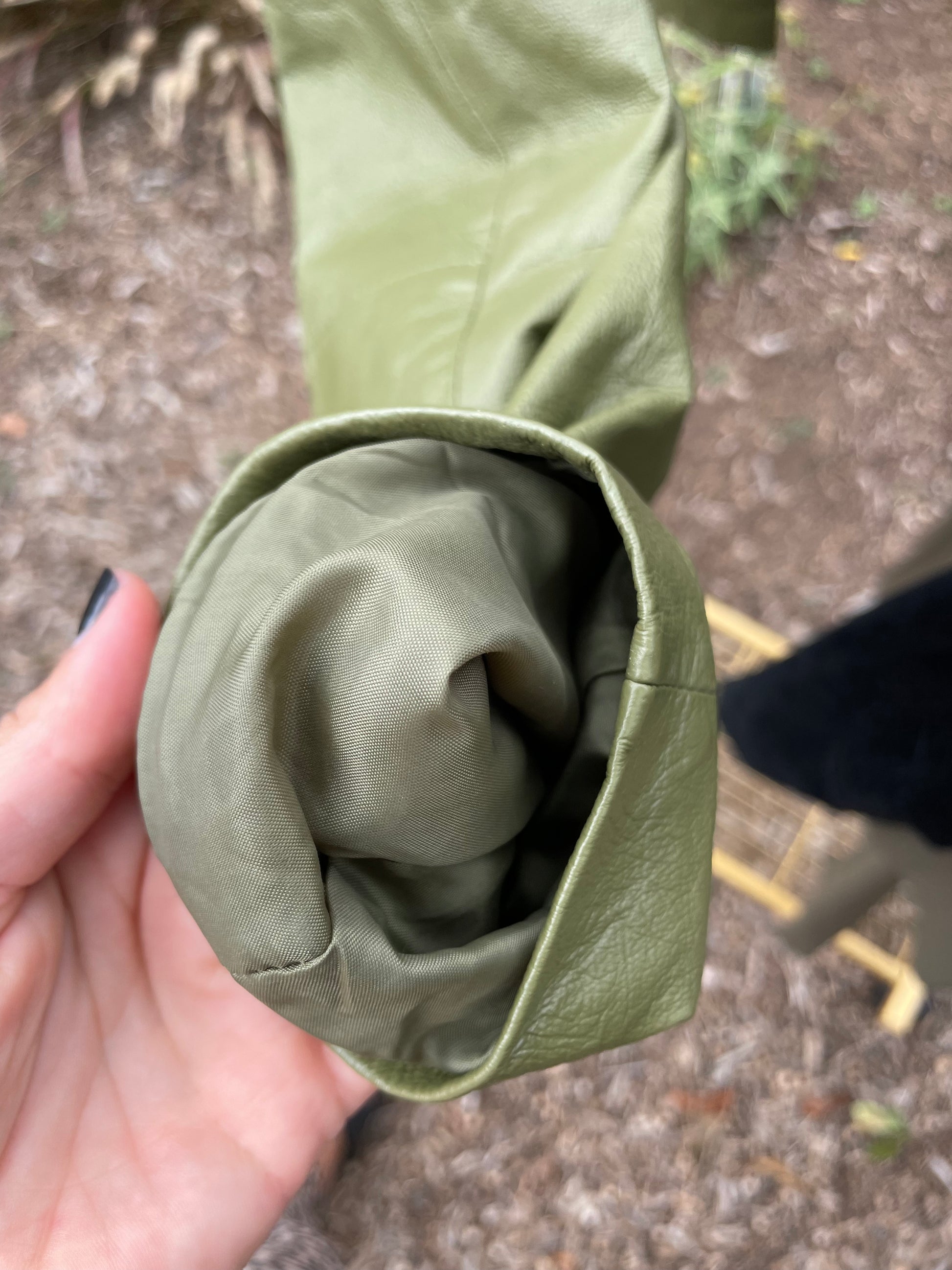 PORTER Green Leather Jacket by MetroStyle tag size L