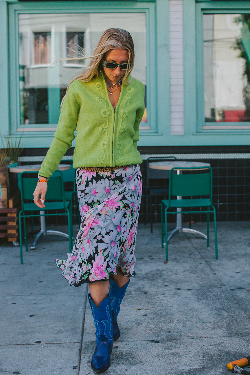 PORTER Green Not-your-grandmothers Sweater Full Zip Cardigan Size S-L