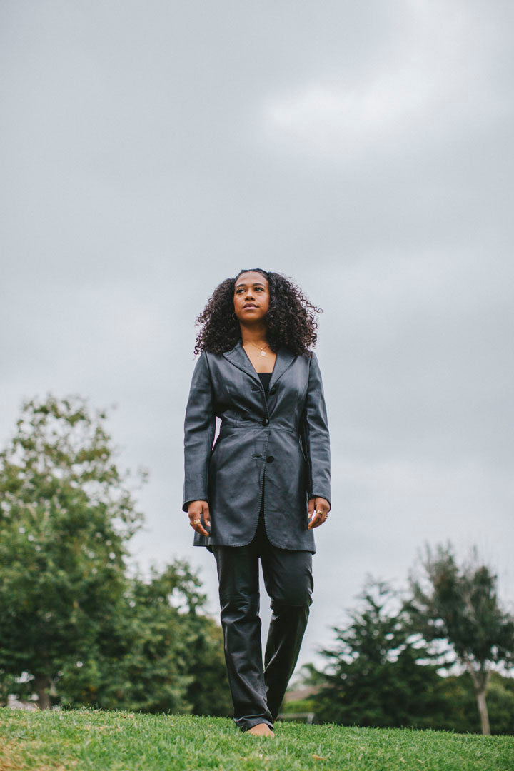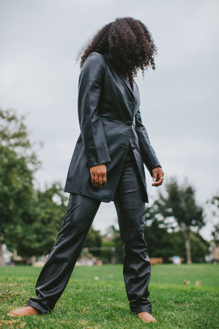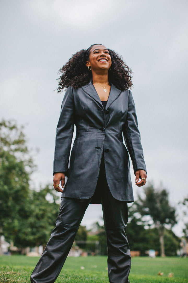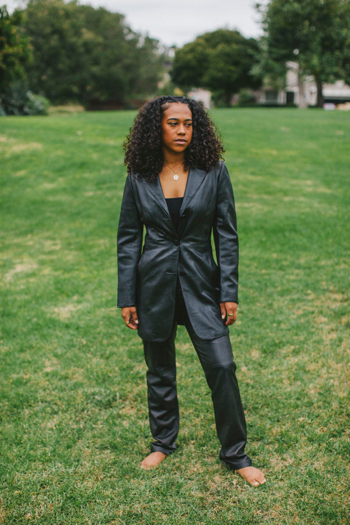 PORTER Midnight Black Open Stitch Leather Trench Size IT 40