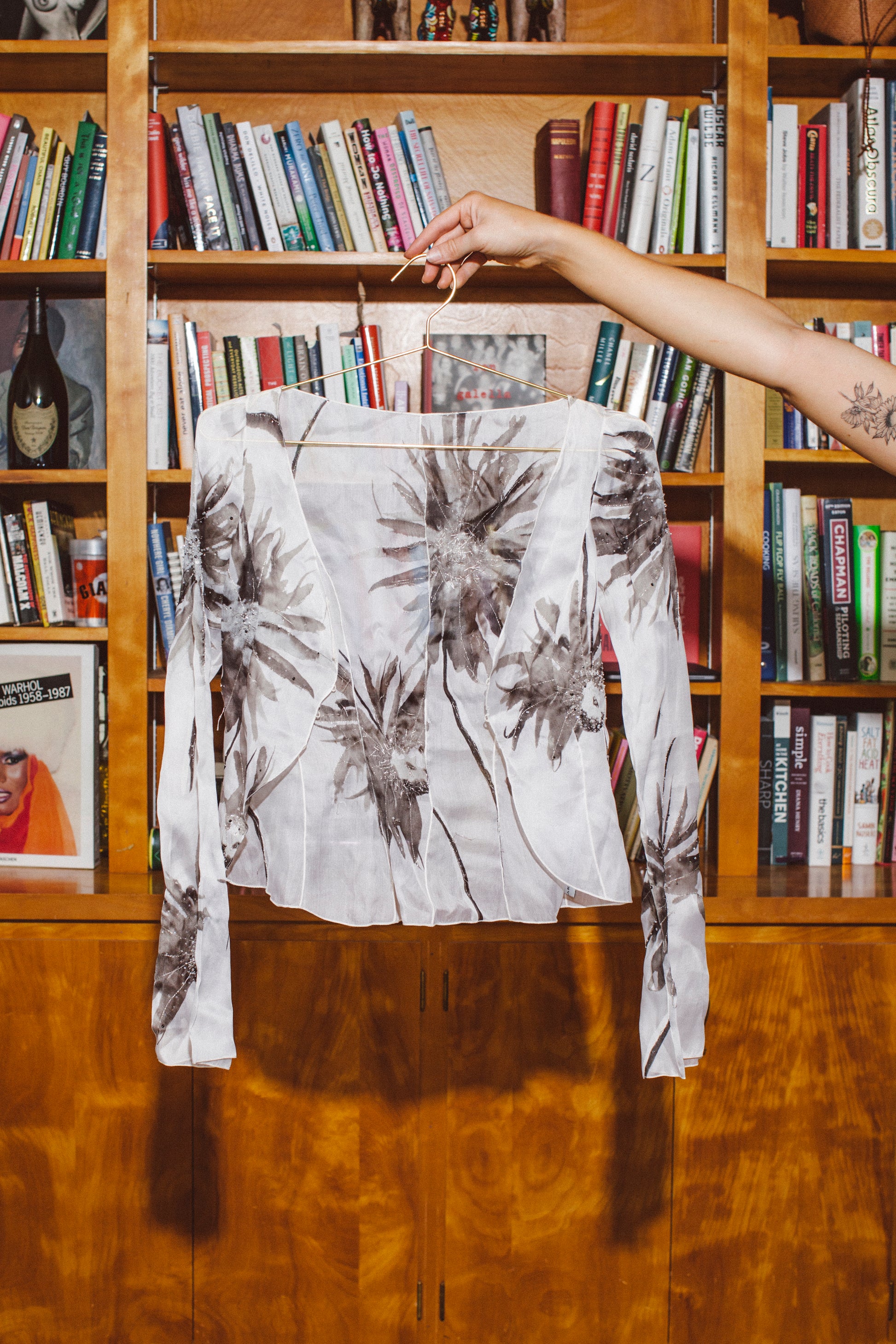 A rare sleek and silky PORTER Carolina Herrera top that is one of a kind. It has loops for what may have been a thread to close it but we chose to leave it open for now. You can customize it however you want you lucky customer who can fit this.