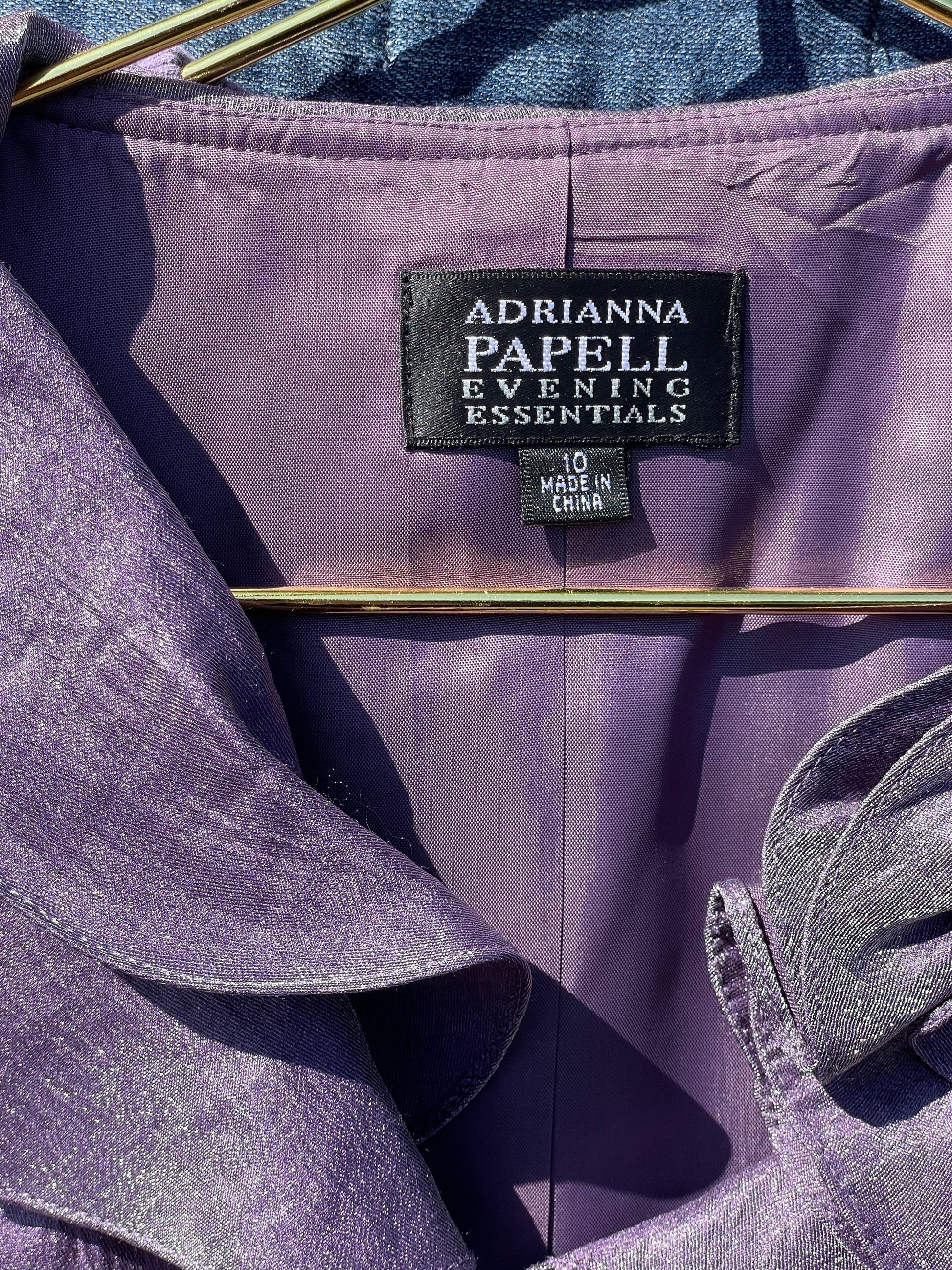 PORTER Silk Organza Purple Metallic Ruffled Top Jacket with Black Ribbon Tie waist size 10