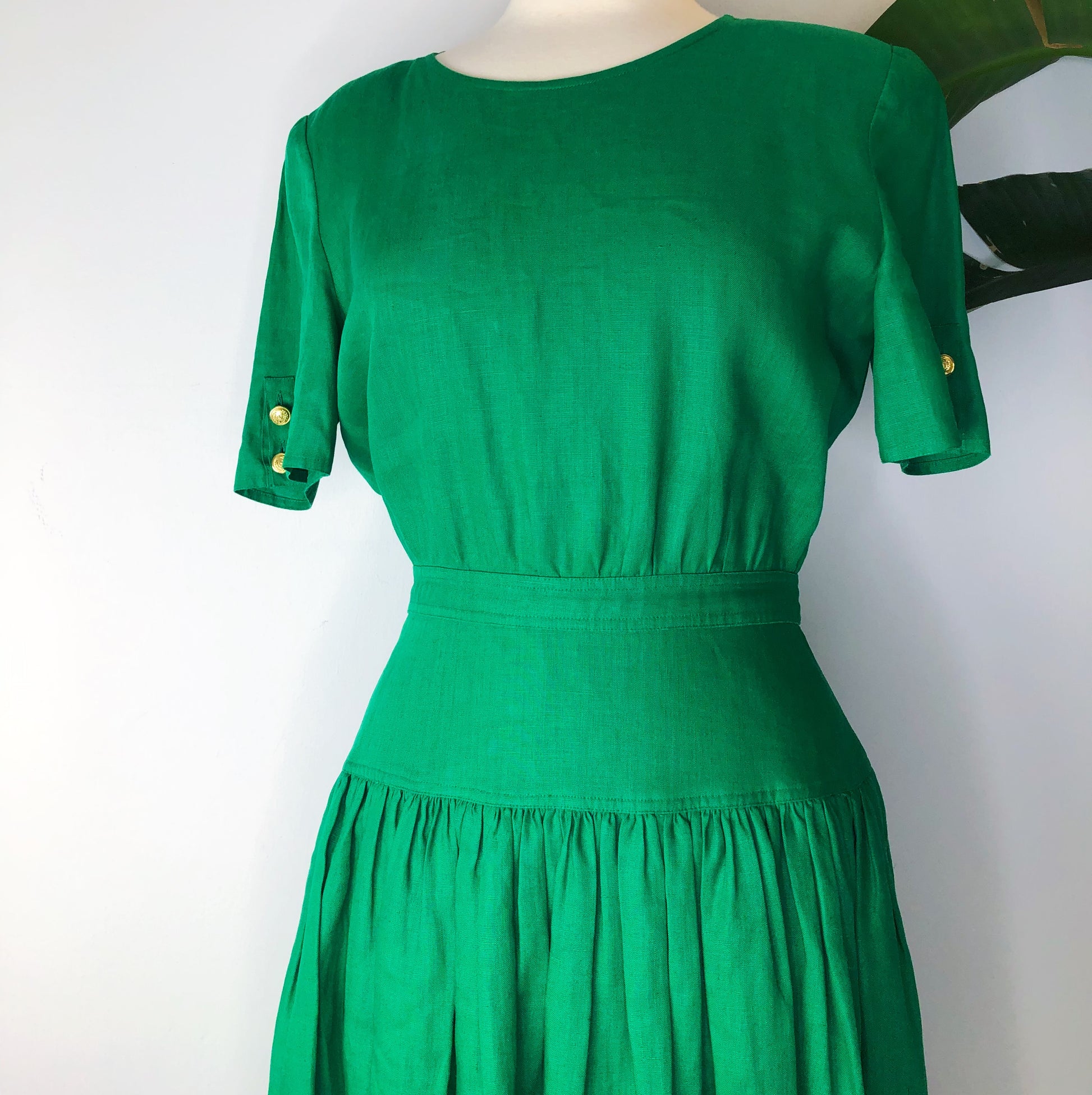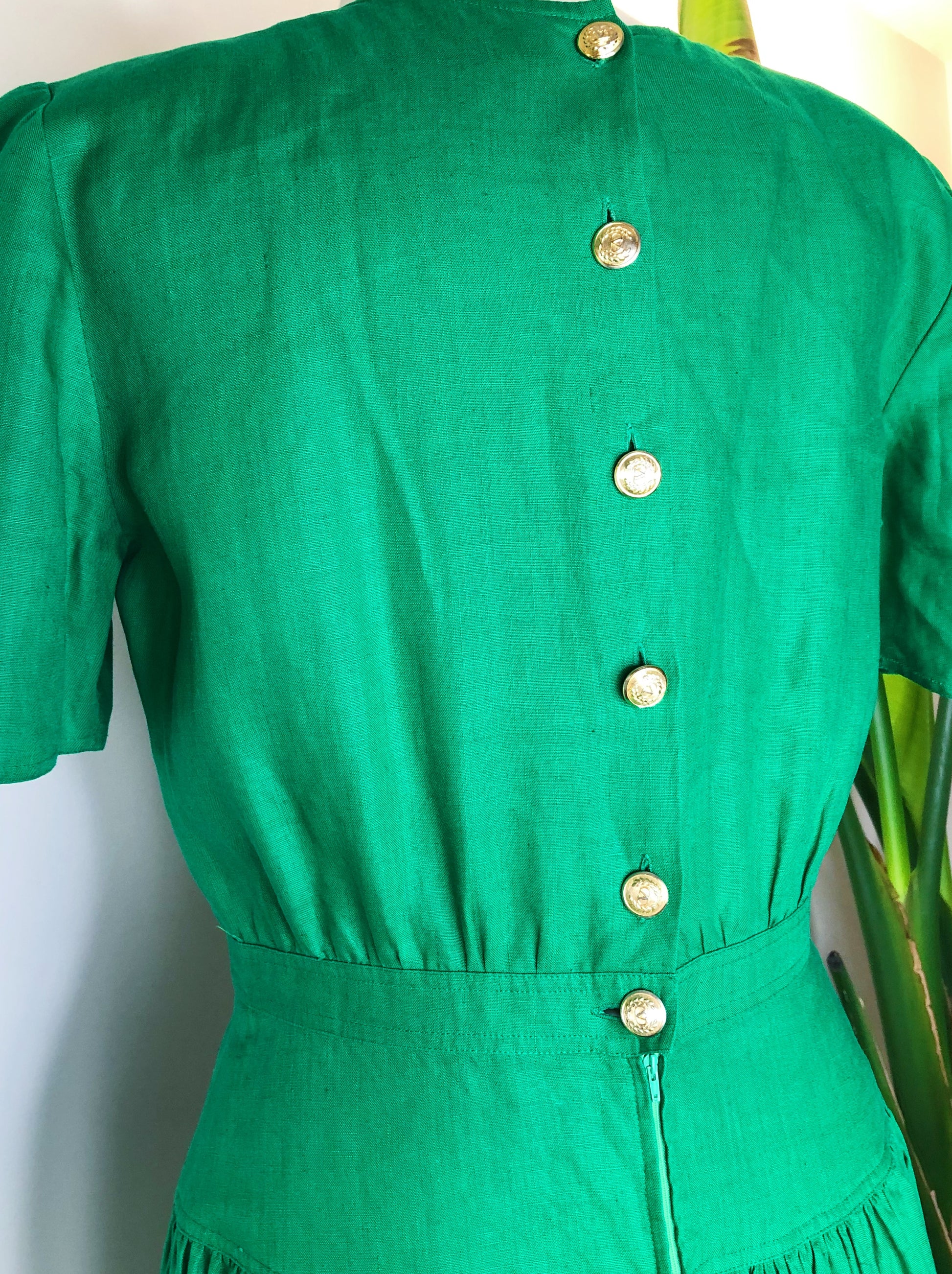 Summer dress perfection. Made in Italy by Valentino; zipper followed by 5 gold buttons up the back, sits beautifully on the waist, linen, with pockets!