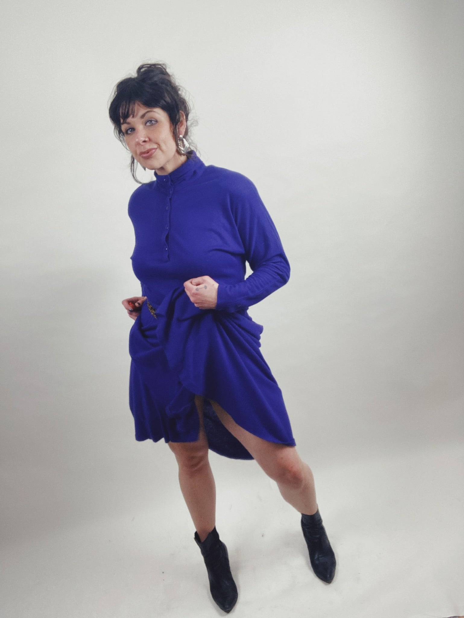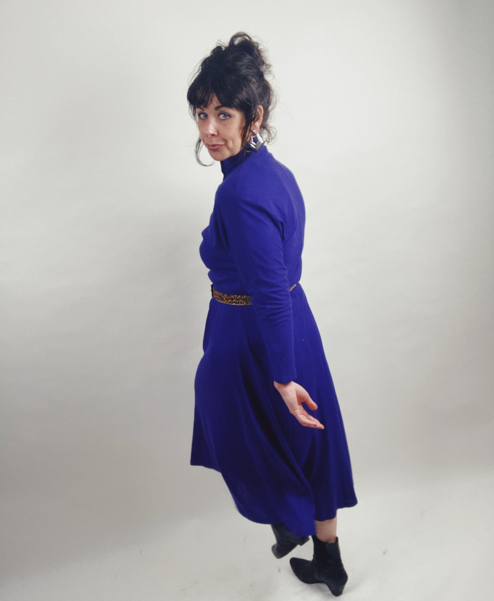 A perfect winter dress in a gorgeous purple color, this dress is anything but boring. She would look gorgeous with a stack of gold necklaces peeking out from under the high collar.